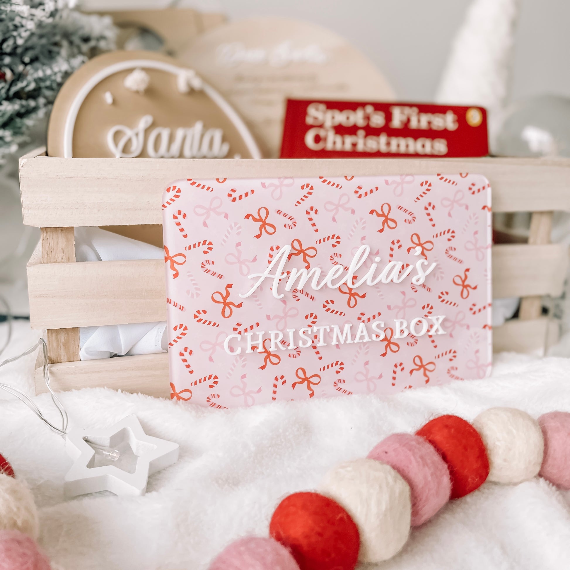 Acrylic Christmas Crate Plaque - Candy Cane Print