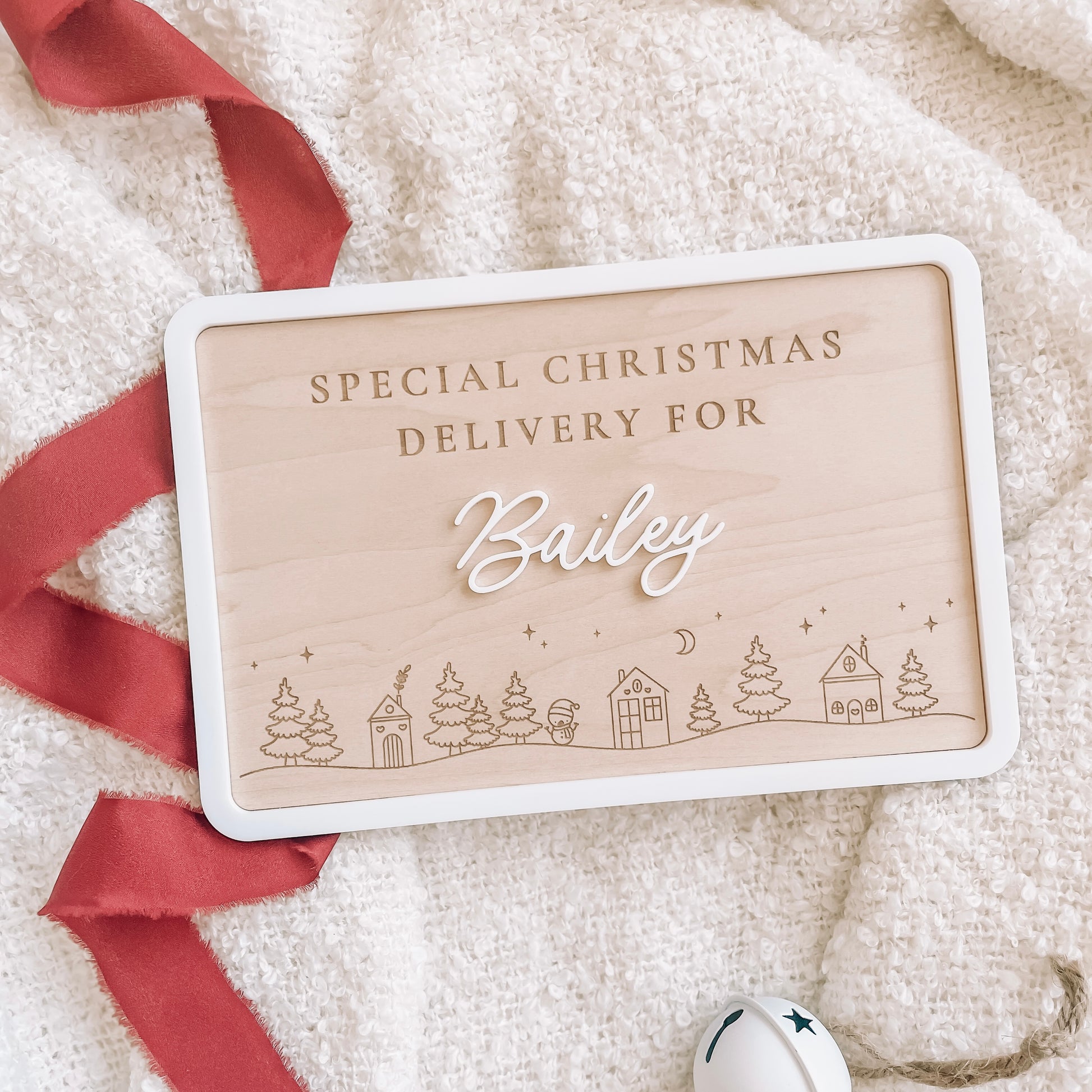 Make your Christmas Eve box or festive crate extra special with our personalised wooden Christmas plaque. Each plaque is crafted from engraved wood, beautifully framed with white acrylic, and finished with a custom acrylic name for the perfect festive touch.