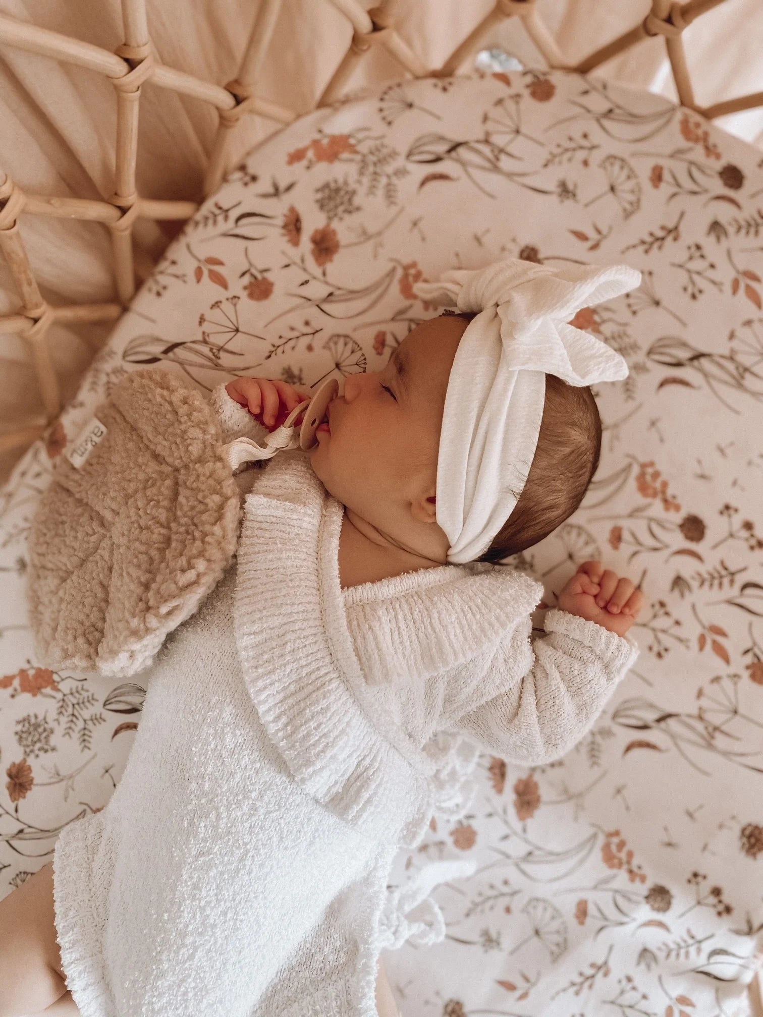 Our knit bodysuits are the perfect piece. This bodysuit is made from 100% textured cotton. Two ties on the side and snap buttons make nappy changing easy.