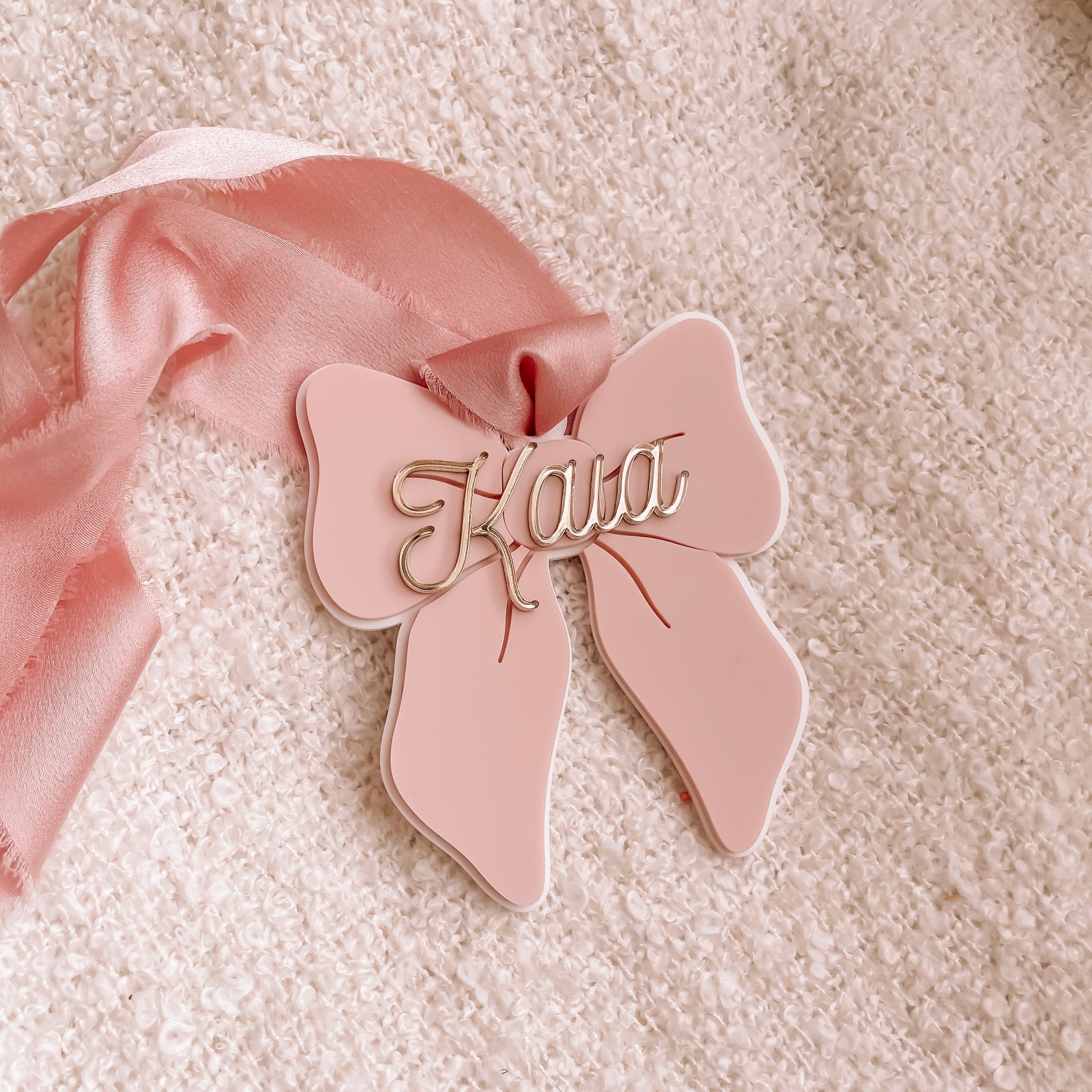 Crafted from high-quality layered acrylic, this ornament features a beautiful pink bow design with your chosen name in stunning mirror acrylic lettering. Finished with a ribbon for hanging, it’s the perfect balance of classic Christmas cheer and modern keepsake design.