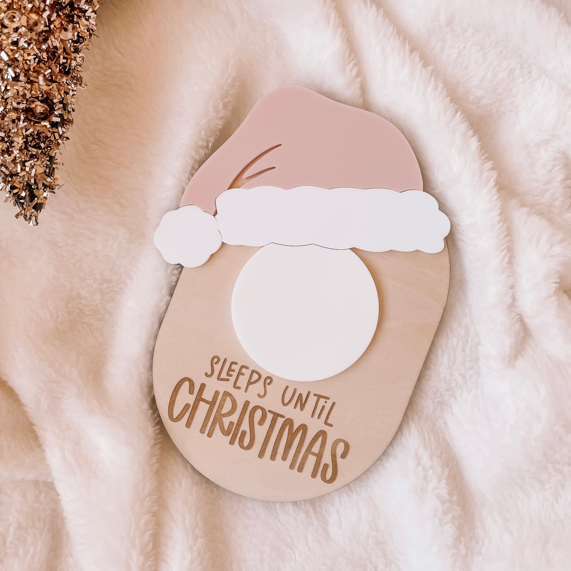 Wooden basswood base with acrylic Santa hat + writable circle