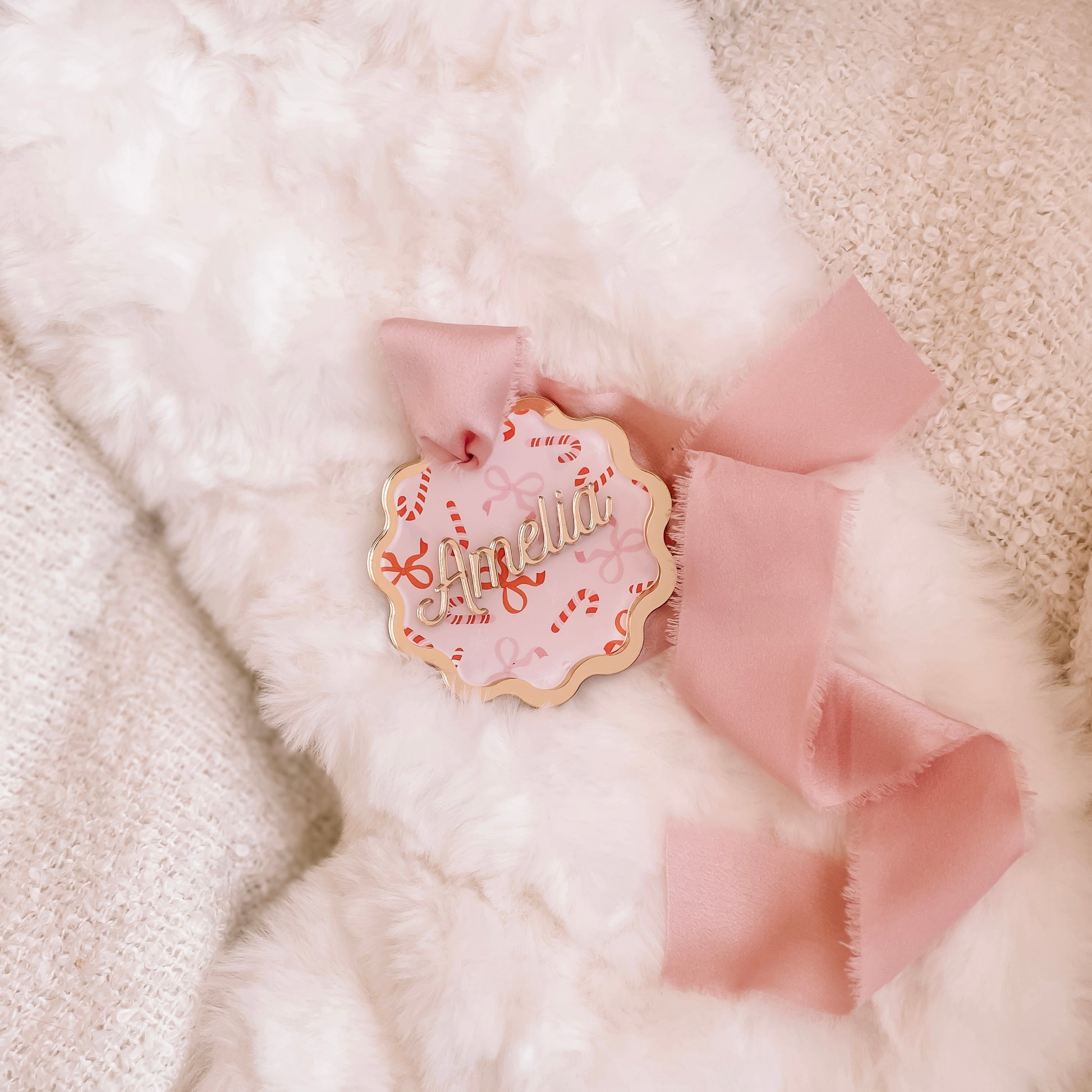 Each ornament is customised with your chosen name in shiny mirror acrylic, making it a timeless keepsake for years to come. Finished with a soft fabric ribbon for hanging, these baubles are the perfect blend of modern elegance and festive fun.